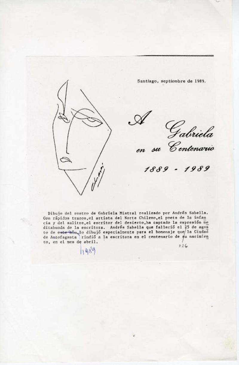 [Tarjeta] 1983 septiembre 7, Antofagasta, [Chile] [a] Oreste Plath [manuscrito] Andrés Sabella.