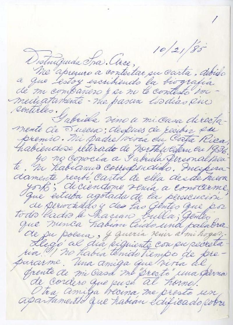 Mistral, Gabriela - Manuscritos estadounidenses - Brun, Christian F. - Correspondencia - Arce, Magda