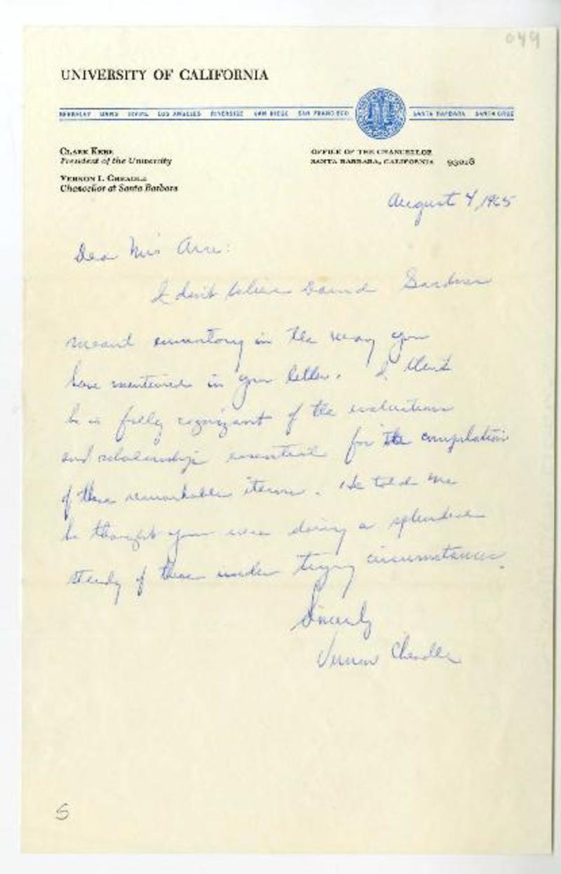 California [a] Magda Arce carta, 1965, [manuscrito] Vernon Irving Cheadle.