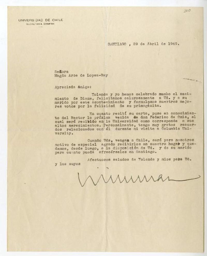 Santiago, Chile [a] Magda Arce de Lopez-Rey Carta, 1949 abril 29, [manuscrito] Enrique Marshall Henríquez.