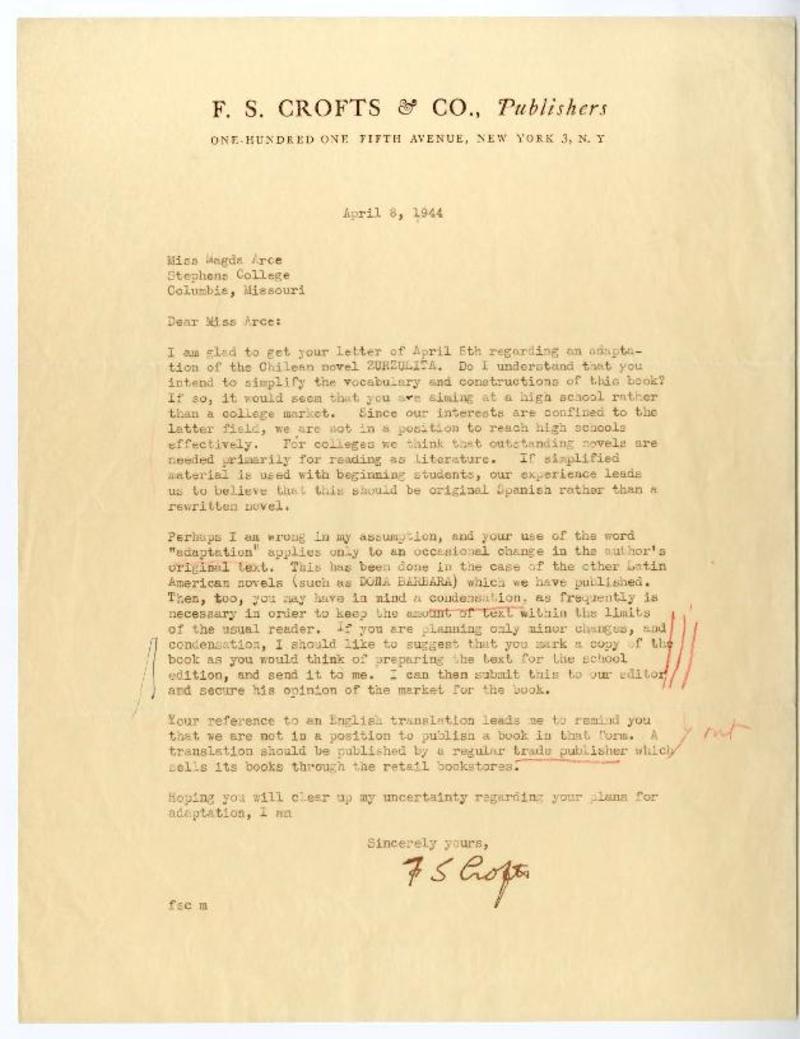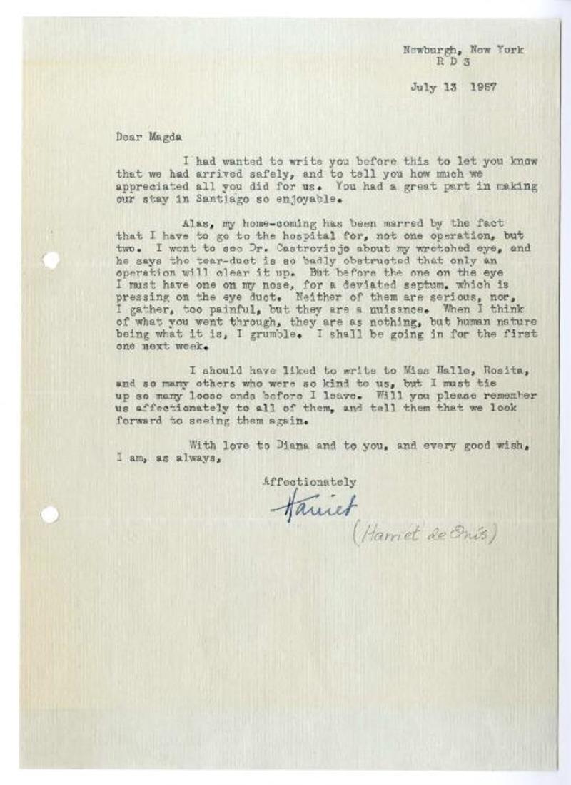 De Onís, Harriet - Autoras estadounidenses - Autoras chilenas - Arce, Magda - Manuscritos estadounidenses - Correspondencia