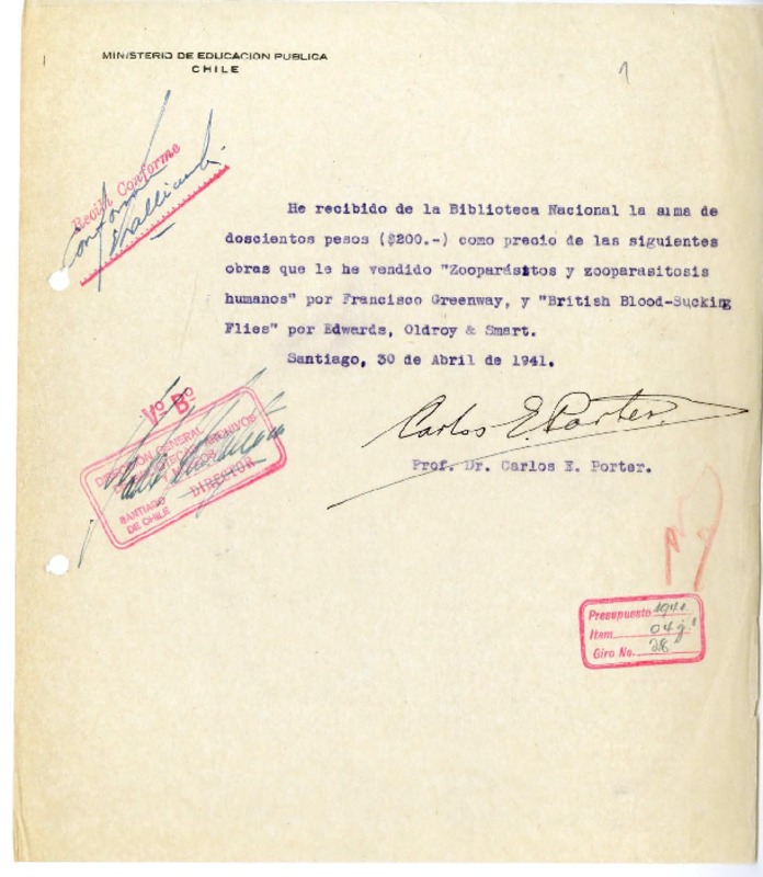 Montt Montt, Luis - Porter, Carlos E. - Manuscritos chilenos - Autores chilenos - Correspondencia