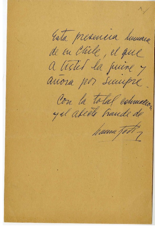 [Dedicatoria] 1945, Santiago, Chile [a] Gabriela Mistral [manuscrito] Laura Rodig.
