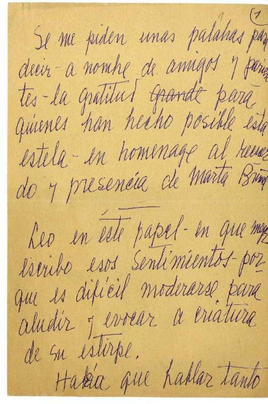 Homenajes - Manuscritos chilenos - Brunet, Marta - Discursos chilenos