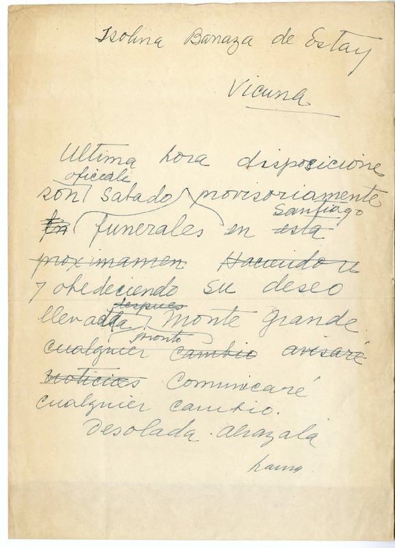 [Regresamos a Chile...] [manuscrito] Laura Rodig.