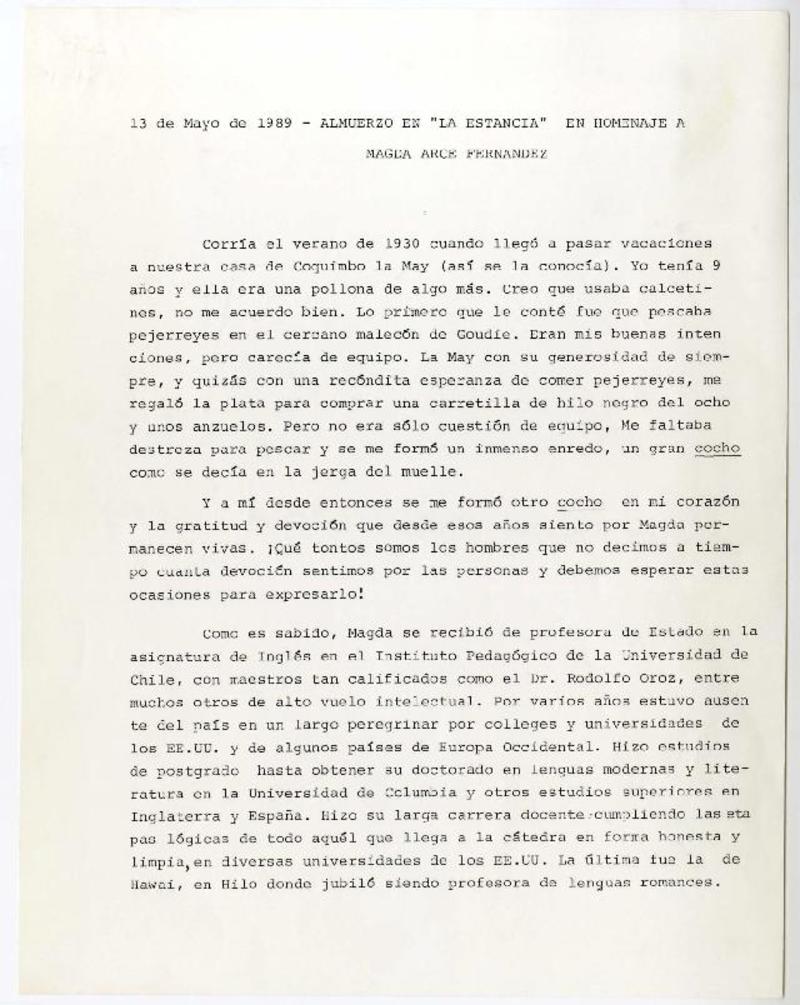 Manuscritos chilenos - Homenajes - Arce, Magda