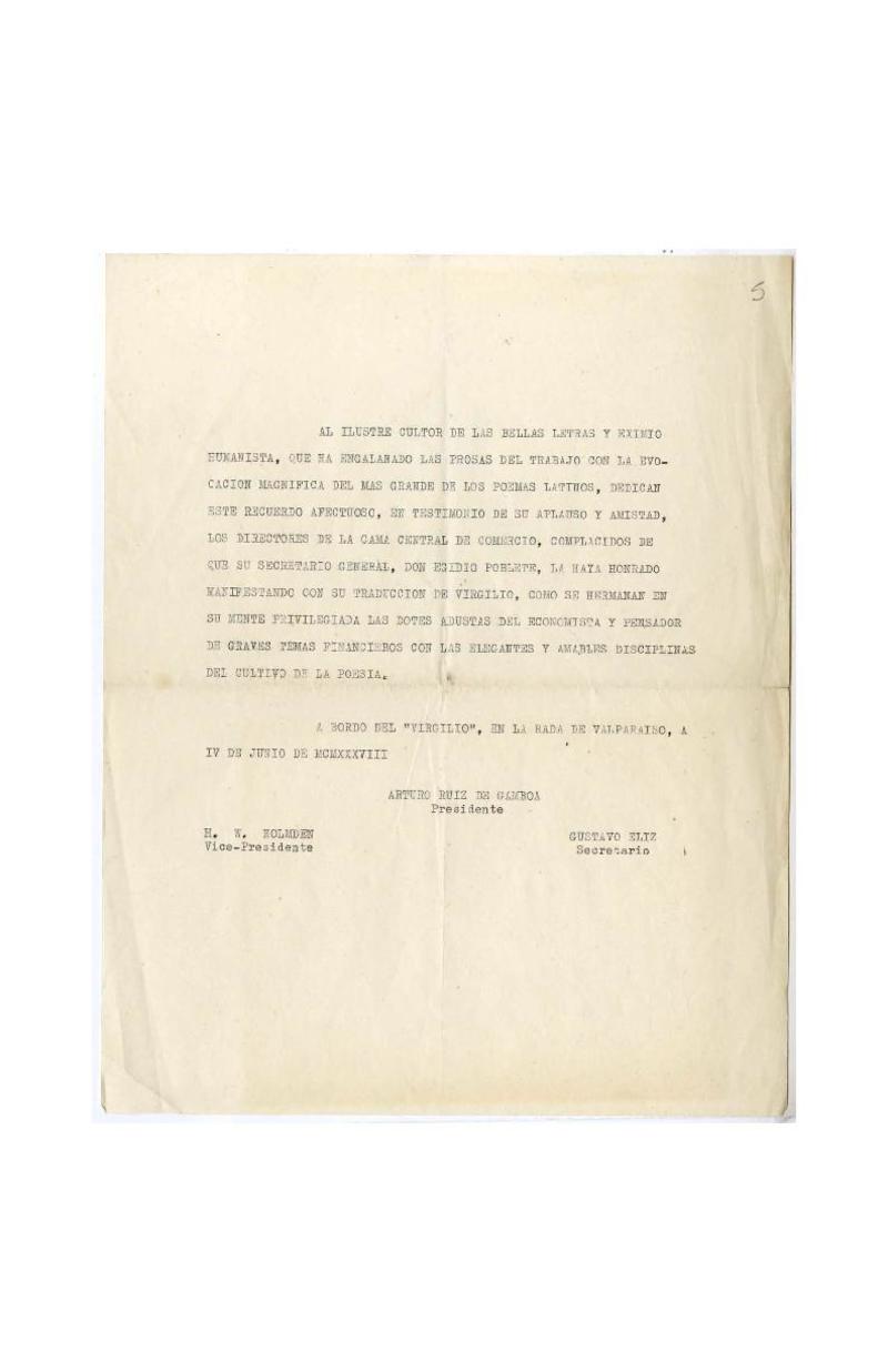 Homenaje a Egidio Poblete [manuscrito] Cámara Central de Comercio.