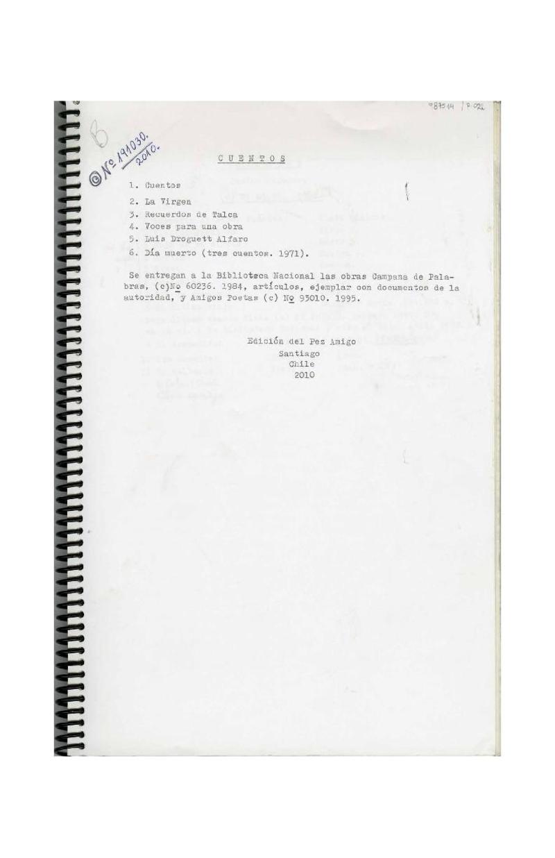 Cid, Teófilo - Maluenda, Rafael - Cuentos chilenos - García, Pablo - Tejeda, Juan - Manuscritos chilenos - Bunster, Enrique - Emar, Juan