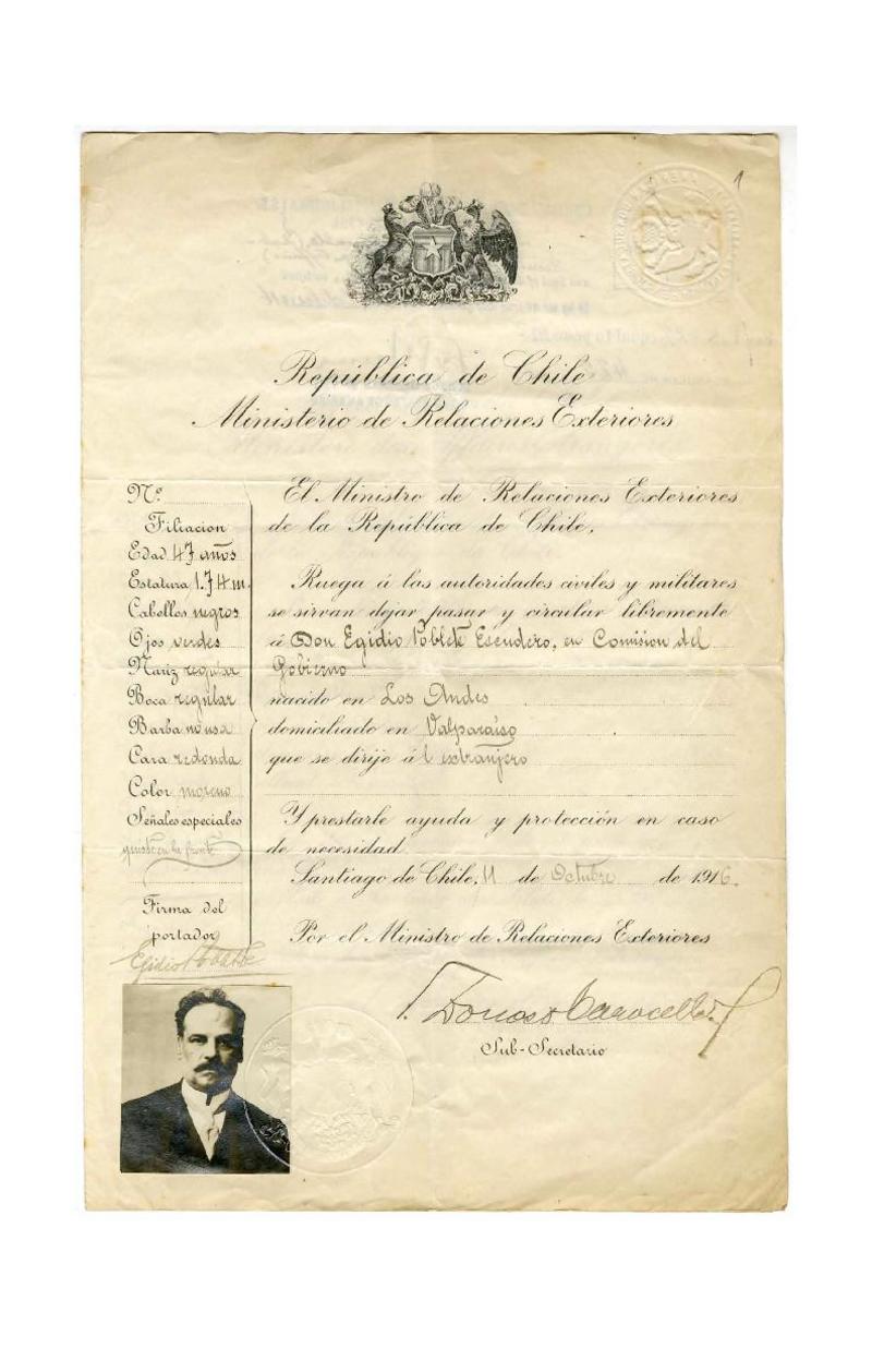 Autores chilenos - Reyes, Salvador - Diplomáticos chilenos - Pasaportes - Manuscritos chilenos