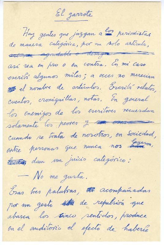 El garrote [manuscrito] Joaquín Edwards Bello.