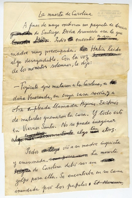 La muerte de Carolina [manuscrito] Joaquín Edwards Bello.