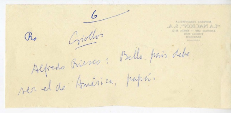 [Criollos] [manuscrito] Joaquín Edwards Bello.