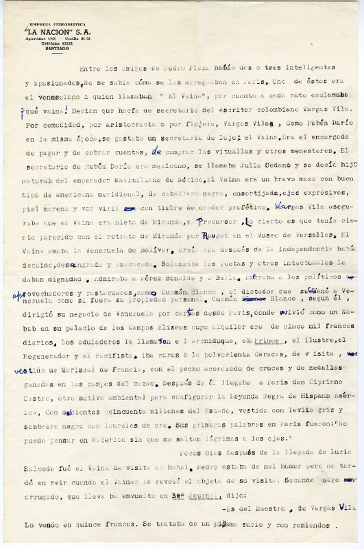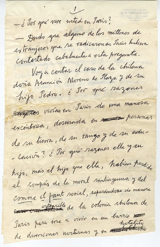 [Criollos en París] [manuscrito] Joaquín Edwards Bello.