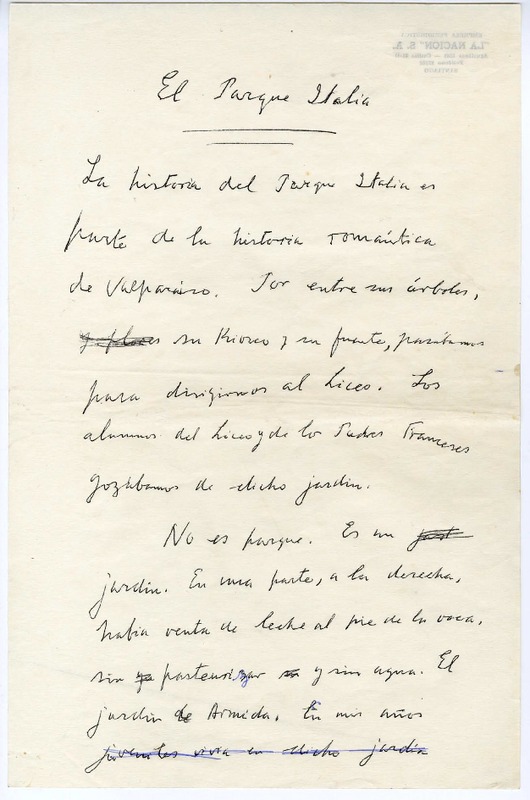 Valparaíso [manuscrito] Joaquín Edwards Bello.