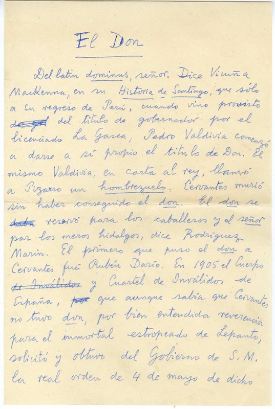 Manuscritos chilenos - Crónicas chilenas - Artículos chilenos