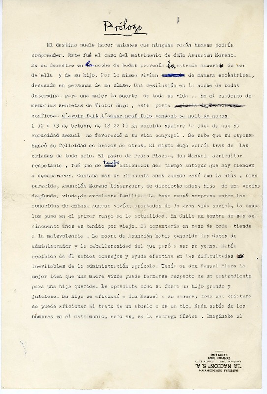 Prólogo [manuscrito] Joaquín Edwards Bello.