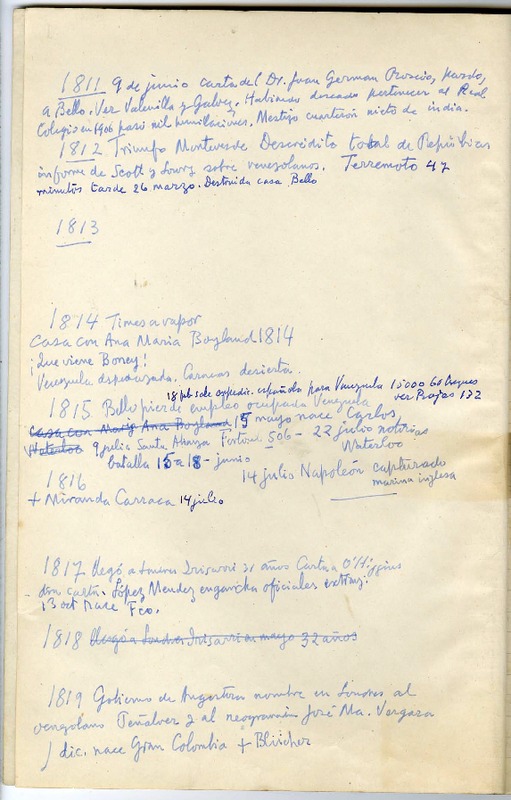 Miranda, Francisco de - Manuscritos chilenos - Bello, Andrés - Crónicas