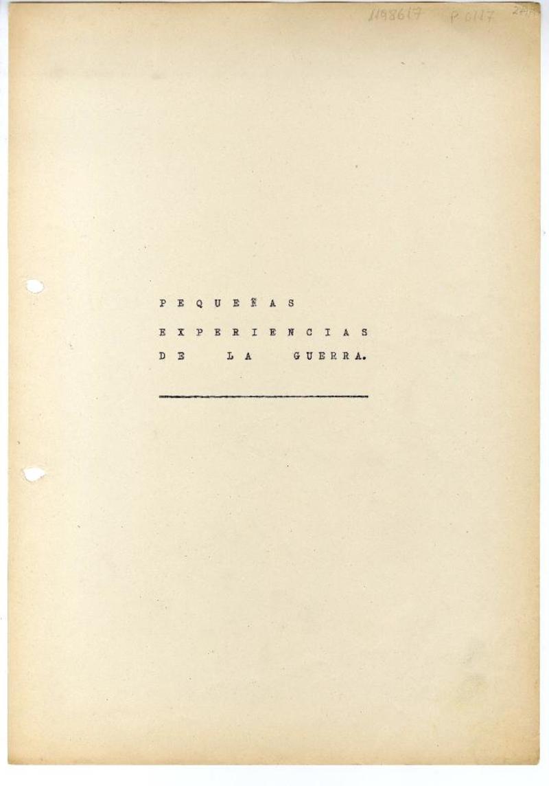 Pequeñas experiencias de la guerra [manuscrito] Salvador Reyes.