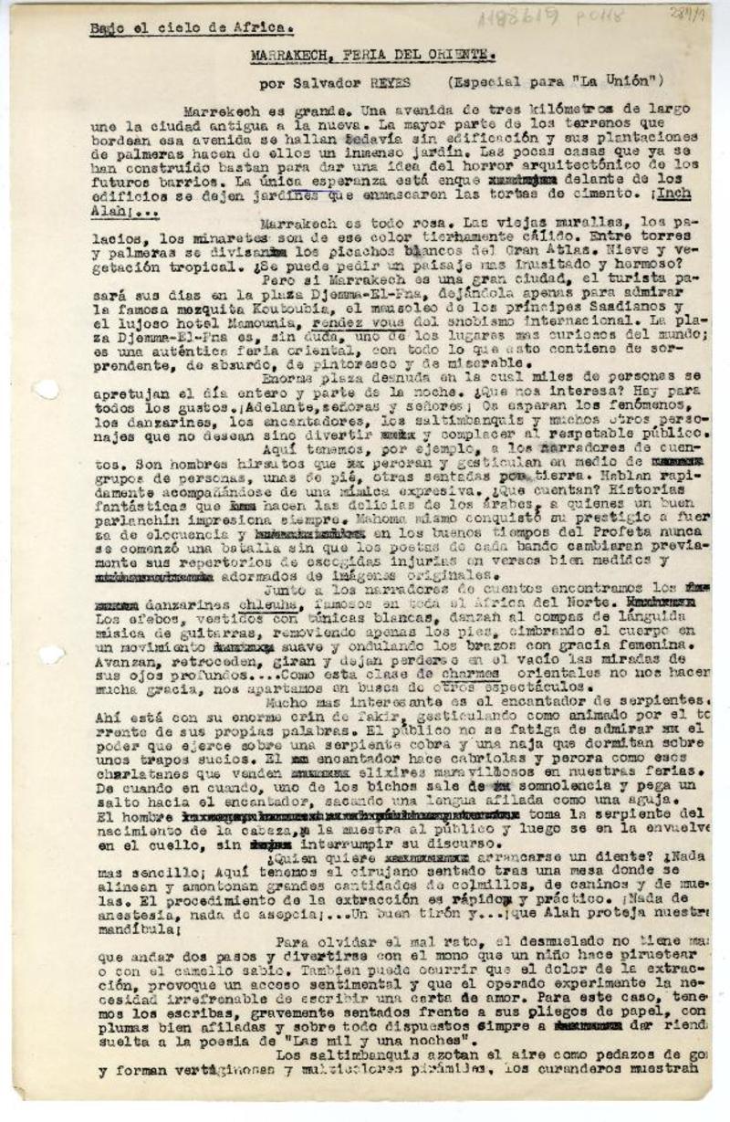 [Especiales para "La Unión" : Viaje a Egipto] [manuscrito] Salvador Reyes.