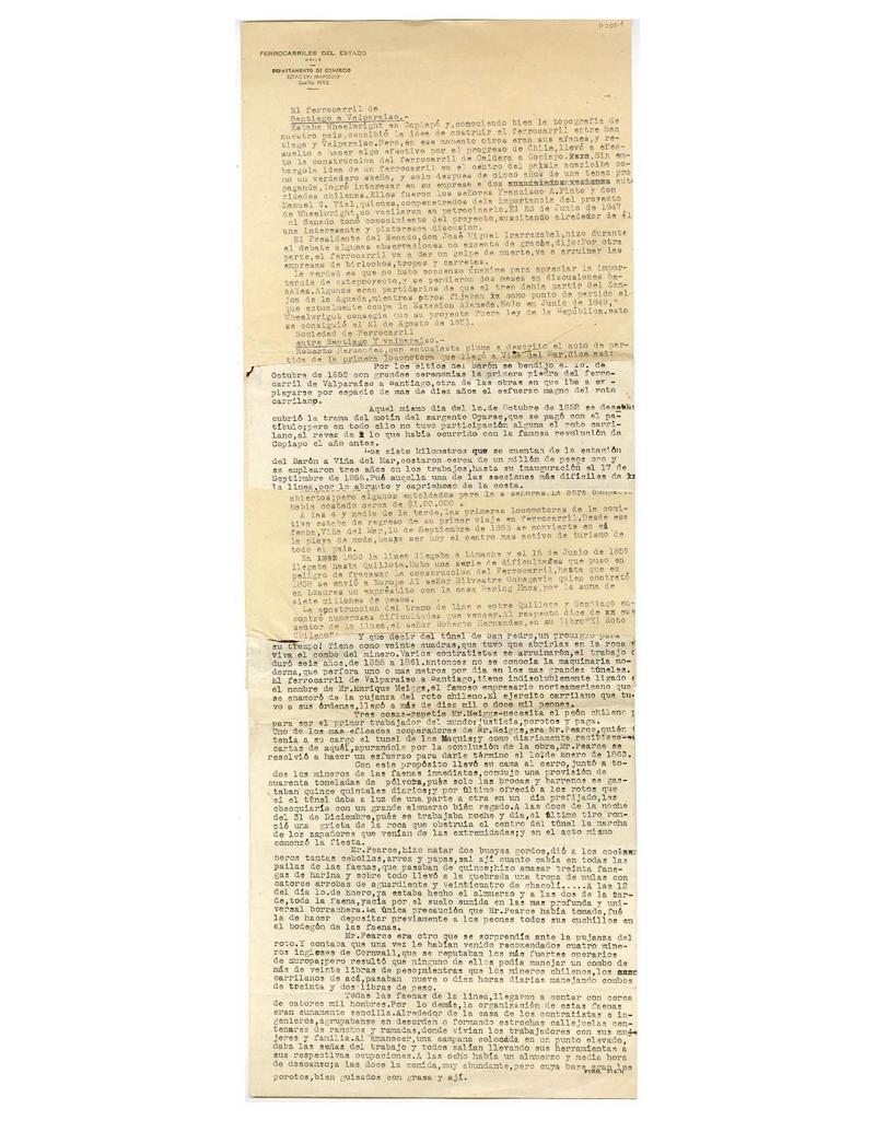 El ferrocarril de Santiago a Valparaíso [manuscrito] Carlos Barella.