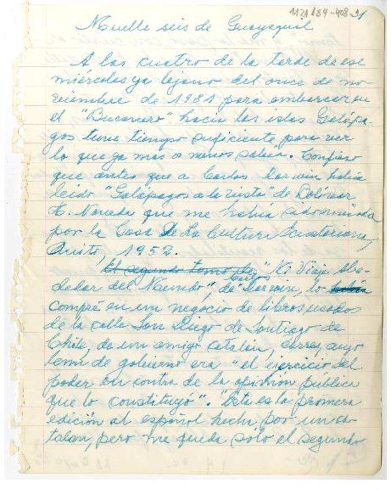 Muelle seis de Guayaquil [manuscrito] Francisco Coloane.