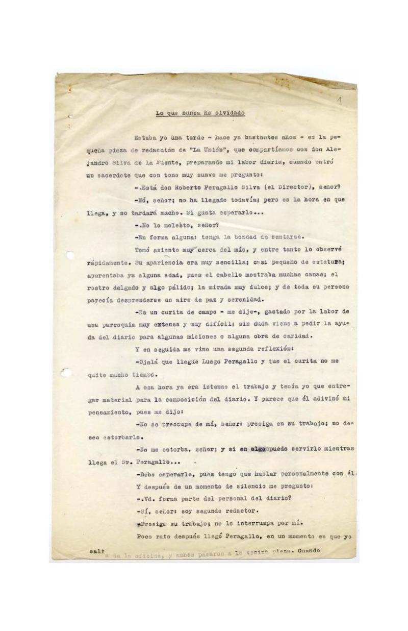 Lo que nunca he olvidado [manuscrito] Egidio Poblete.
