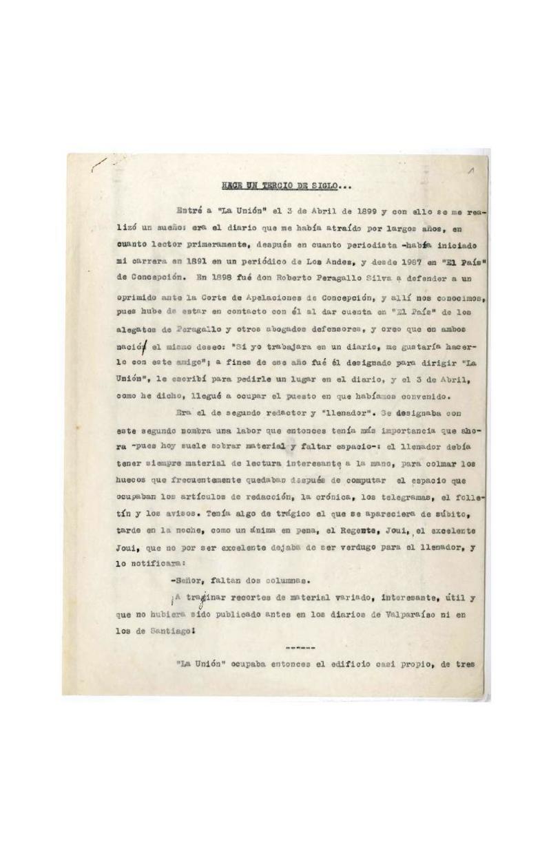 Hace un tercio de siglo... [manuscrito] Egidio E. Poblete.