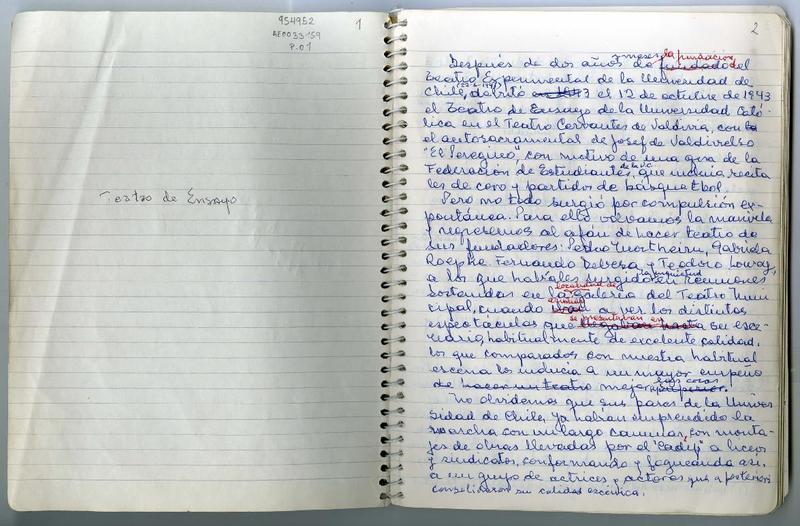 [Historia de los teatros universitarios chilenos] [manuscrito] Mario Cánepa Guzmán.