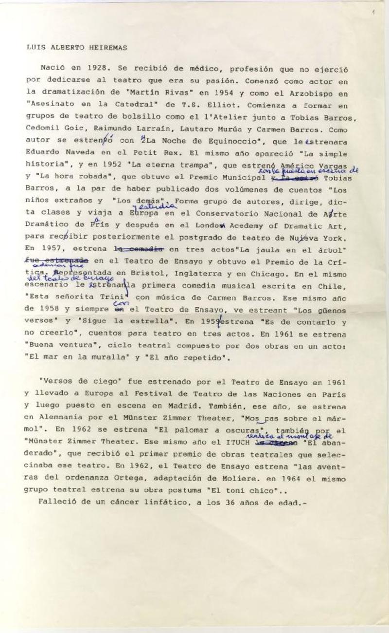 Biografías - Autores chilenos - Reyes, Salvador - Barrios, Eduardo - Manuscritos chilenos