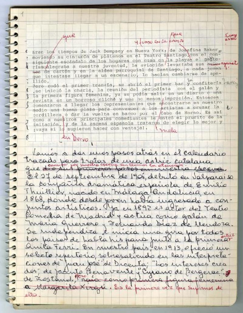[Historia del teatro chileno] [manuscrito] Mario Cánepa Guzmán.