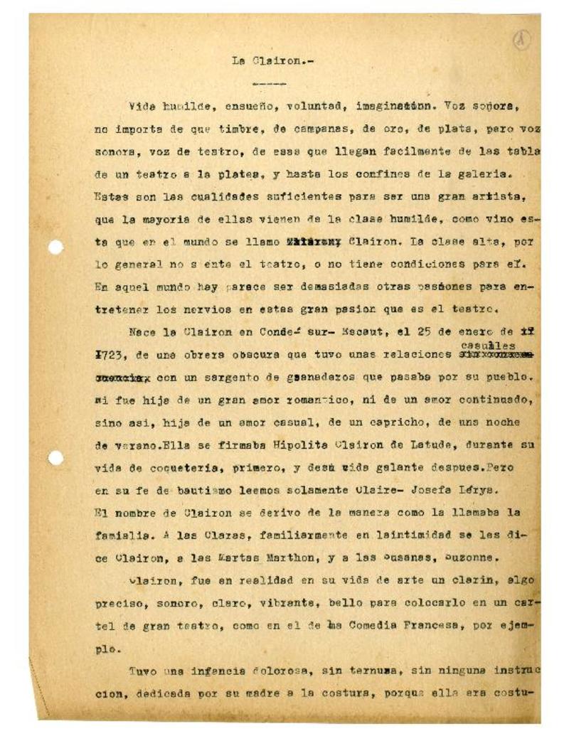 La Clairon [manuscrito] Nathanael Yáñez Silva.