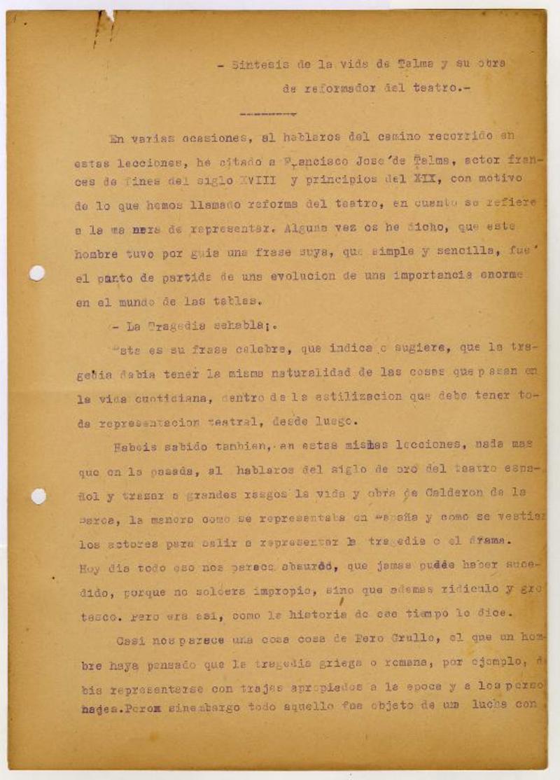Talma, Francois Joseph - Manuscritos chilenos - Teatro francés - Crónicas
