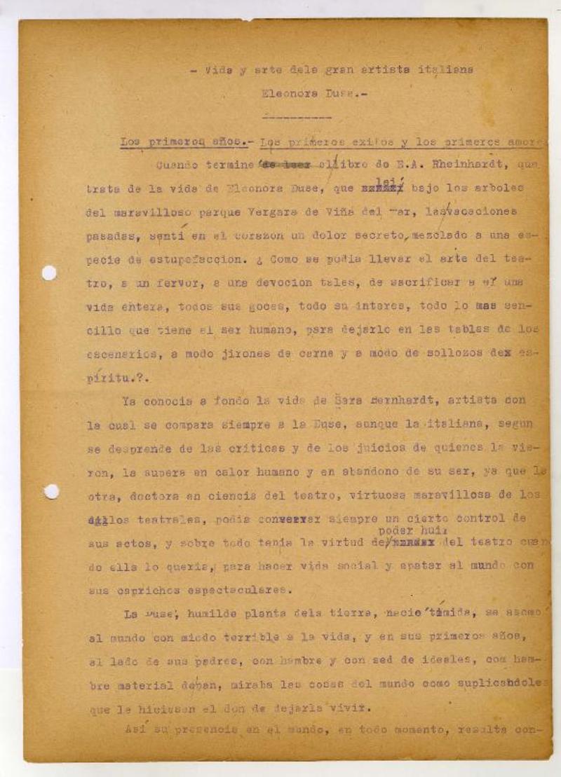 Biografias - Duse, Eleonora - Manuscritos chilenos - Actrices - Crónicas