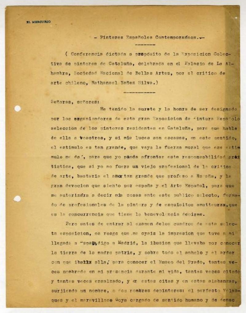 Pintores españoles contemporáneos [manuscrito] Nathanael Yáñez Silva.