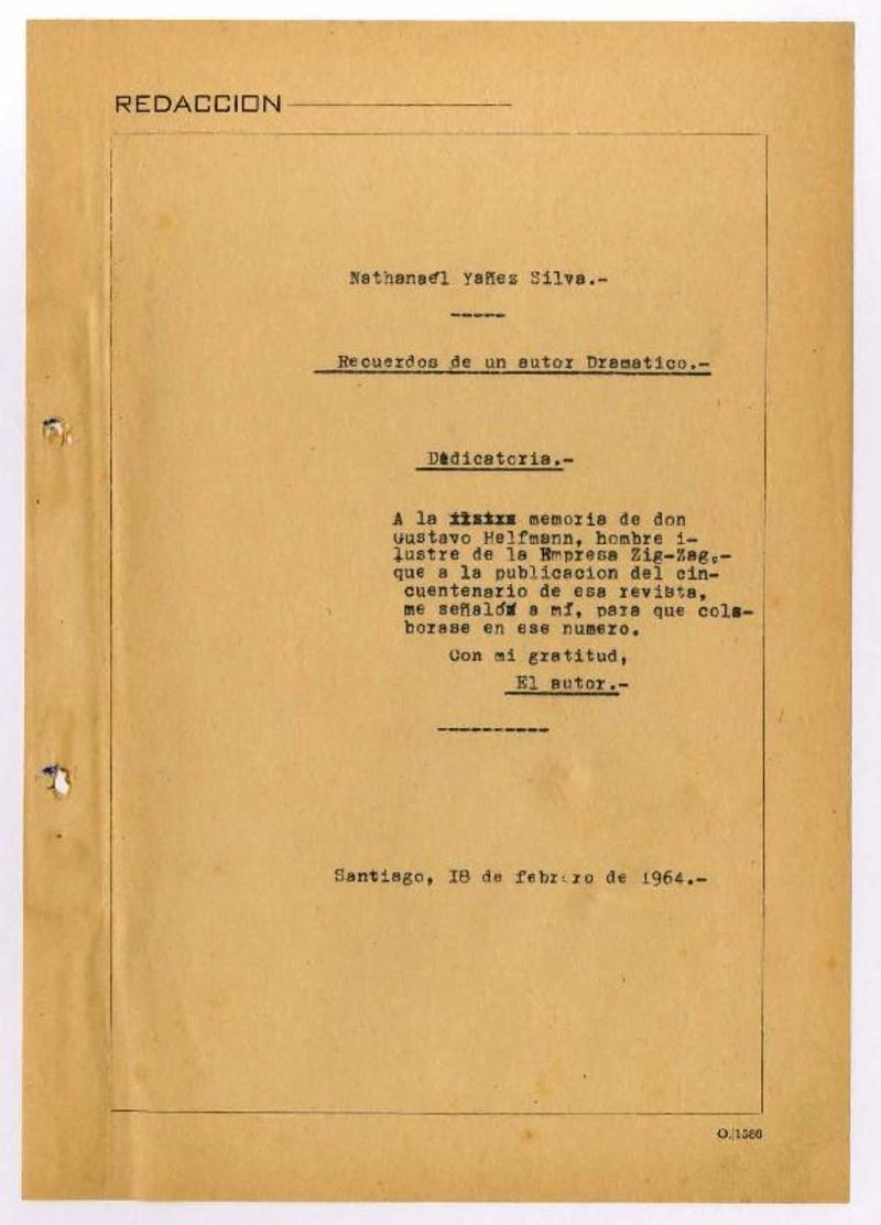 Recuerdos de un autor dramático [manuscrito] Nathanael Yáñez Silva.