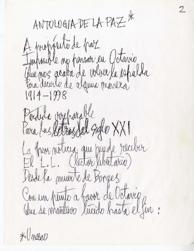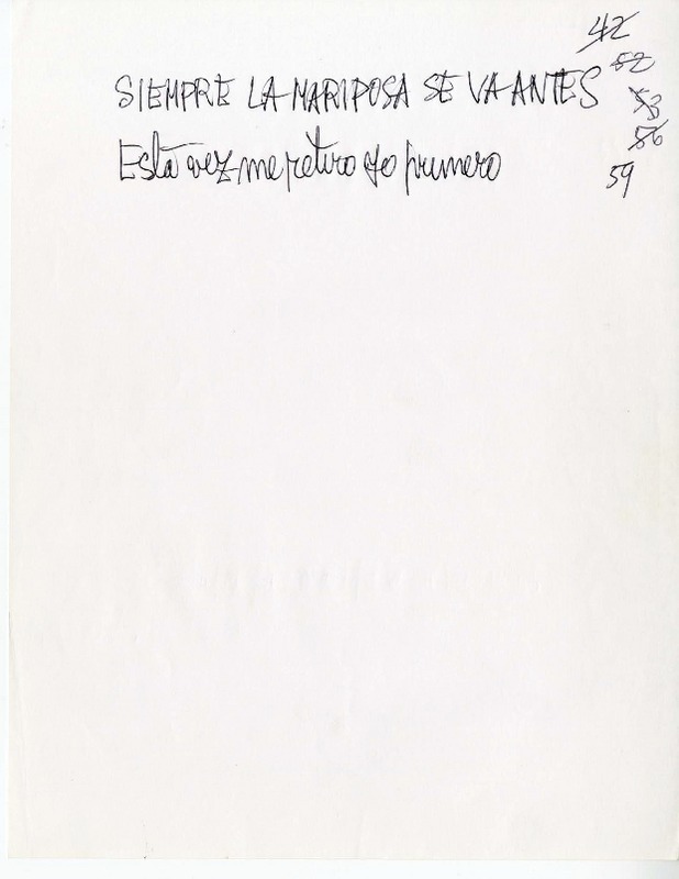 Siempre la mariposa se va antes [manuscrito] Nicanor Parra.
