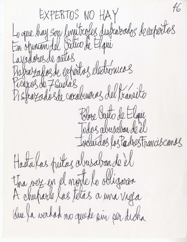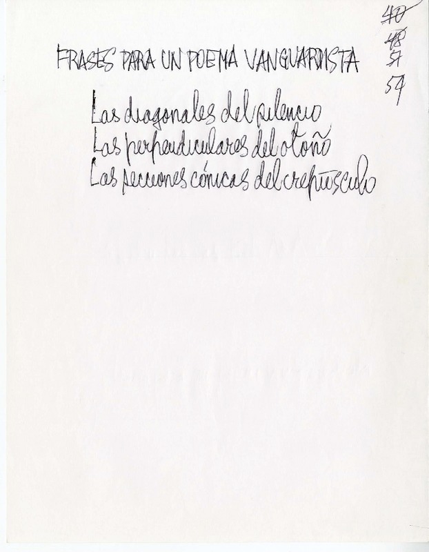 Frases para un poema vanguardista [manuscrito] Nicanor Parra.