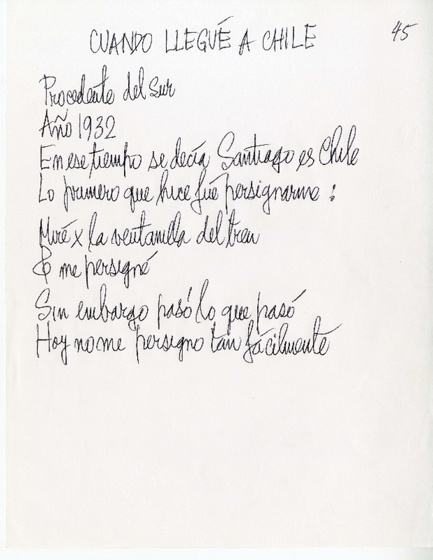 Cuando llegué a Chile [manuscrito] Nicanor Parra.
