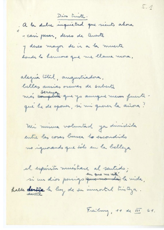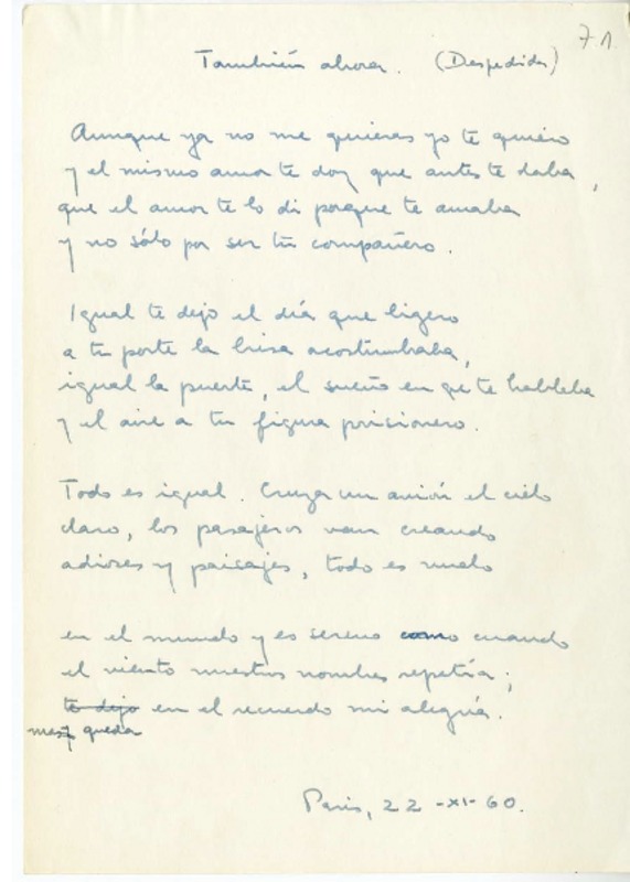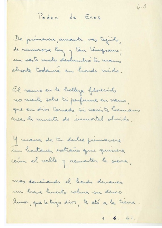 [La distancia de ti...] [manuscrito] Hugo Montes.