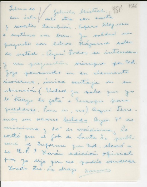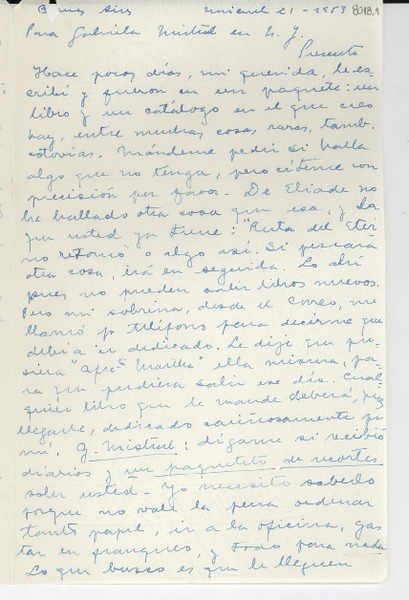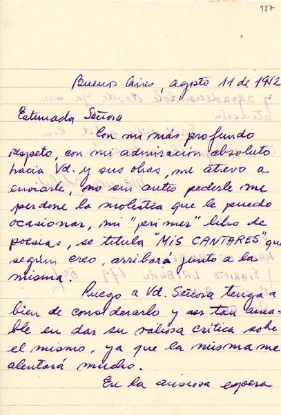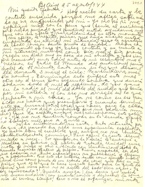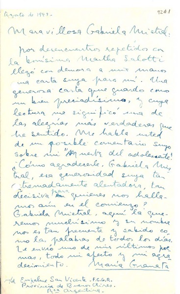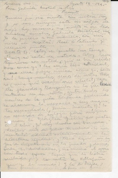 [Carta] [1941?] Ago., [Argentina] [a] Gabriela Mistral