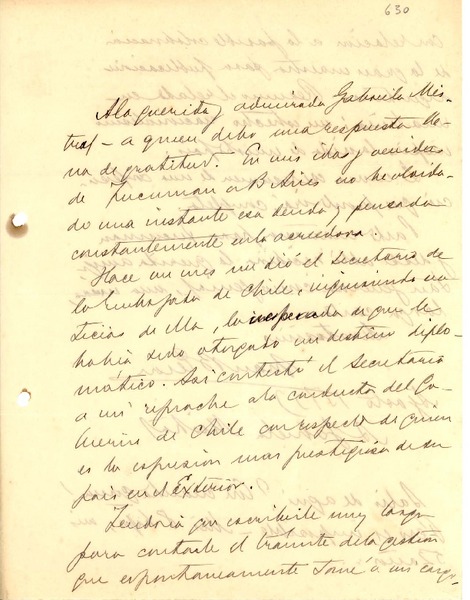 Mistral, Gabriela - Correspondencia - Manuscritos argentinos - Autoras argentinas - Lopardo de Larocca, Beatriz