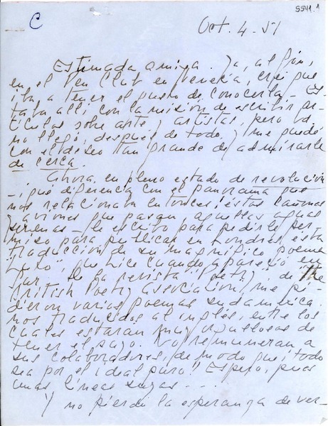 [Carta] 1977 oct. 22, Buenos Aires, Argentina [a] María Luisa Bombal [manuscrito] Victoria Pueyrredon.