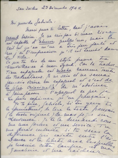 [Carta] 1942 dic. 23, San Isidro, [Argentina] [a] Gabriela Mistral [manuscrito] Victoria Ocampo.