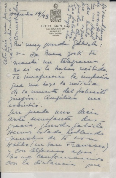 [Carta] 1943 oct. 14, México D. F. [a] Gabriela Mistral [manuscrito] Victoria Ocampo.