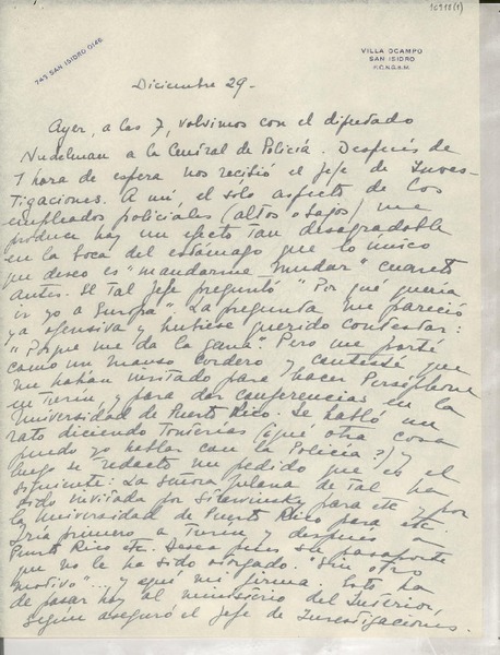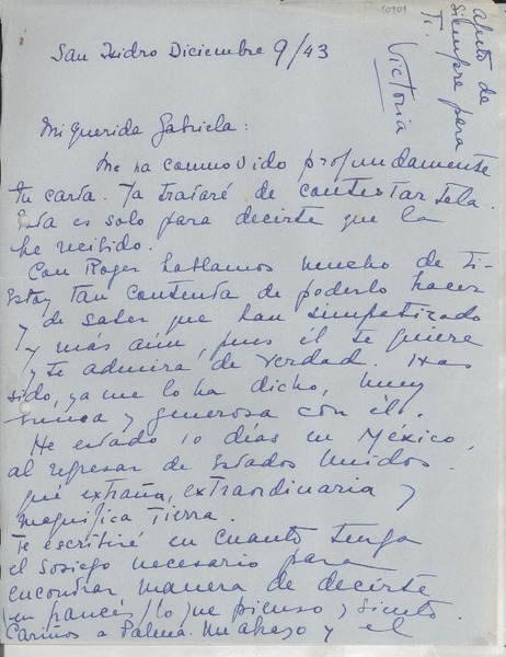 [Carta] 1943 dic. 9, San Isidro, [Argentina] [a] Gabriela Mistral [manuscrito] Victoria Ocampo.