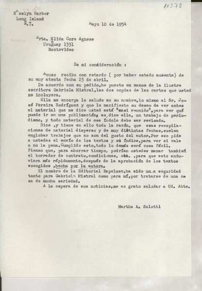 [Carta] 1955 mayo 26, Buenos Aires [a] Gabriela Mistral, Nueva York [manuscrito] Martha [Salotti].