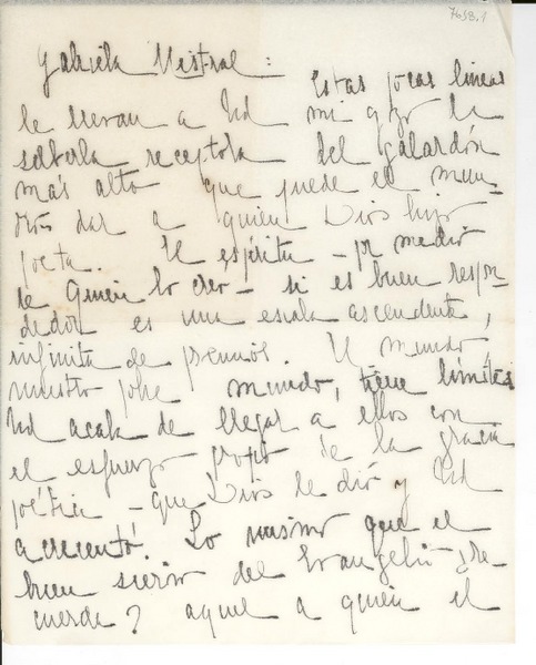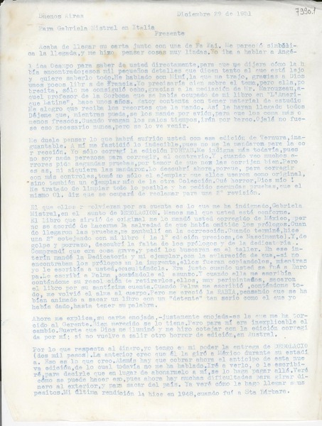 Mistral, Gabriela - Manuscritos argentinos - Ocampo, Victoria - Autoras argentinas - Correspondencia