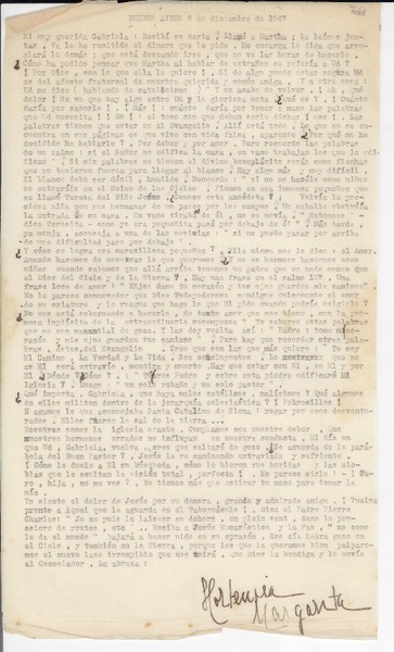 [Carta] Buenos Aires, [Argentina] [a] [Gabriela Mistral] [manuscrito] Hortensia Margarita Raffo.