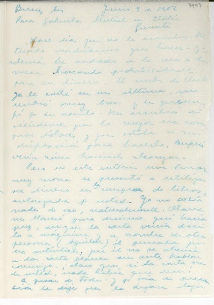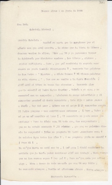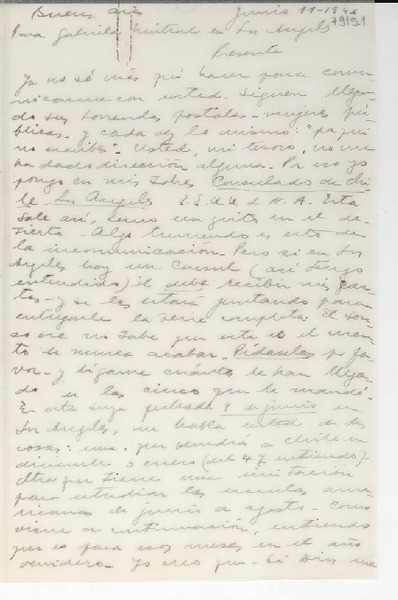 [Carta] 1942 jun. 2, Buenos Aires [a] Gabriela Mistral, Río [de Janeiro] [manuscrito] Martha [Salotti].