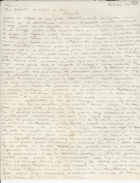 [Carta] 1943 oct. 26, Buenos Aires [a] Gabriela Mistral [manuscrito] María Rosa [Oliver].